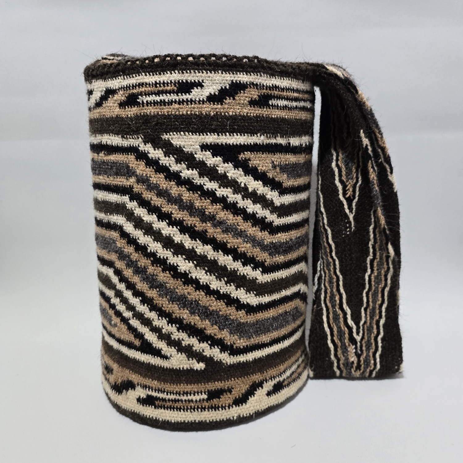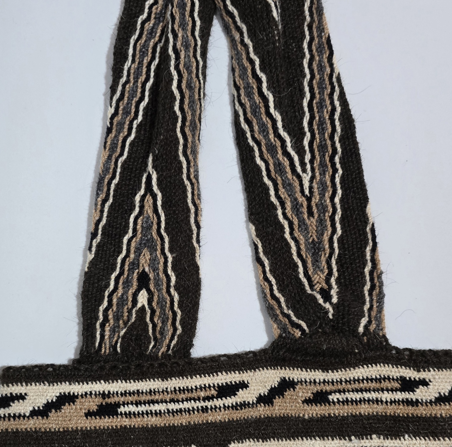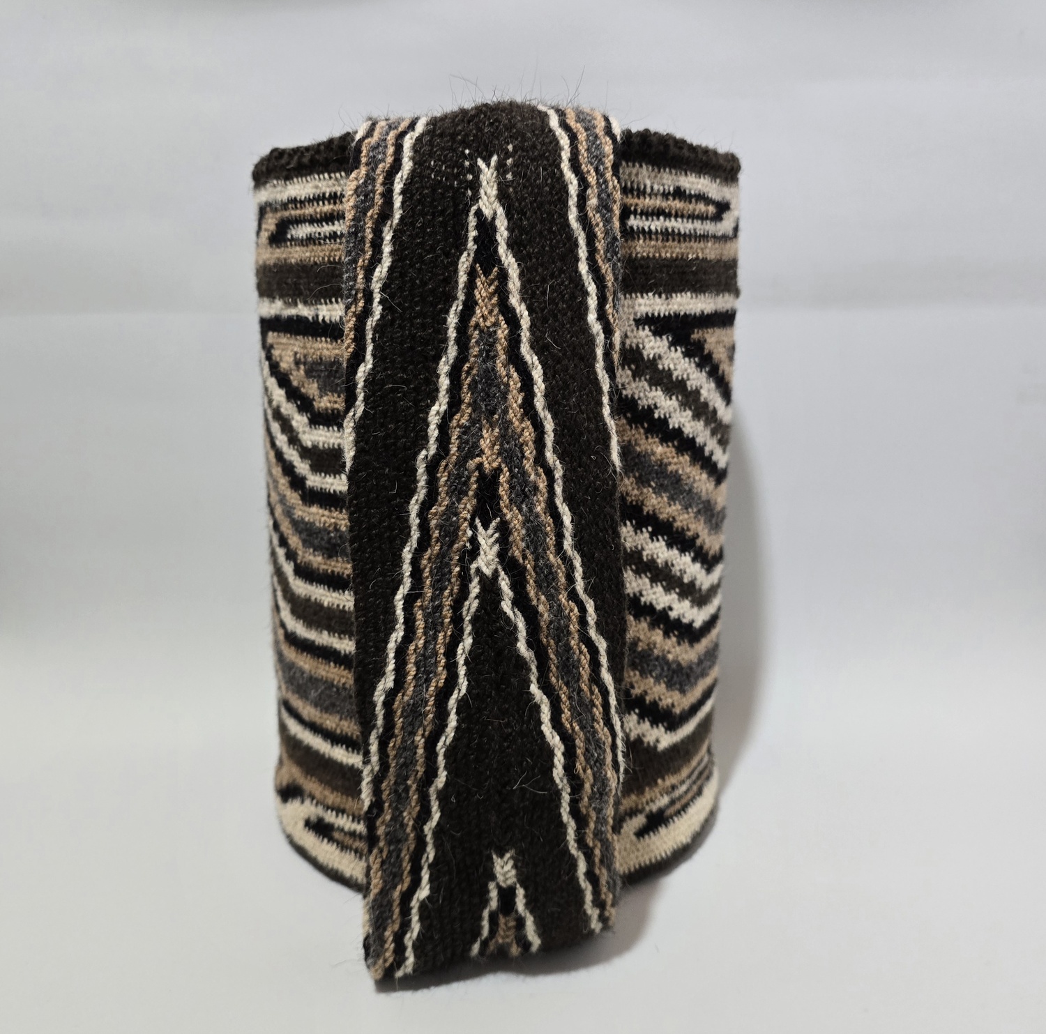 La mochila arhuaca Kunsumunu Cheyrwa, tejida en lana de ovejo, es una obra artesanal que lleva consigo el profundo simbolismo de la sabiduría ancestral.