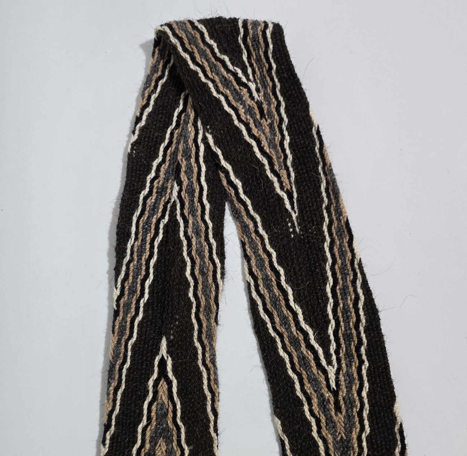 Material y Pureza: Cada hilo de lana, trabajado a mano, conserva su color natural, reflejando la pureza de los materiales y una conexión sagrada con la naturaleza.