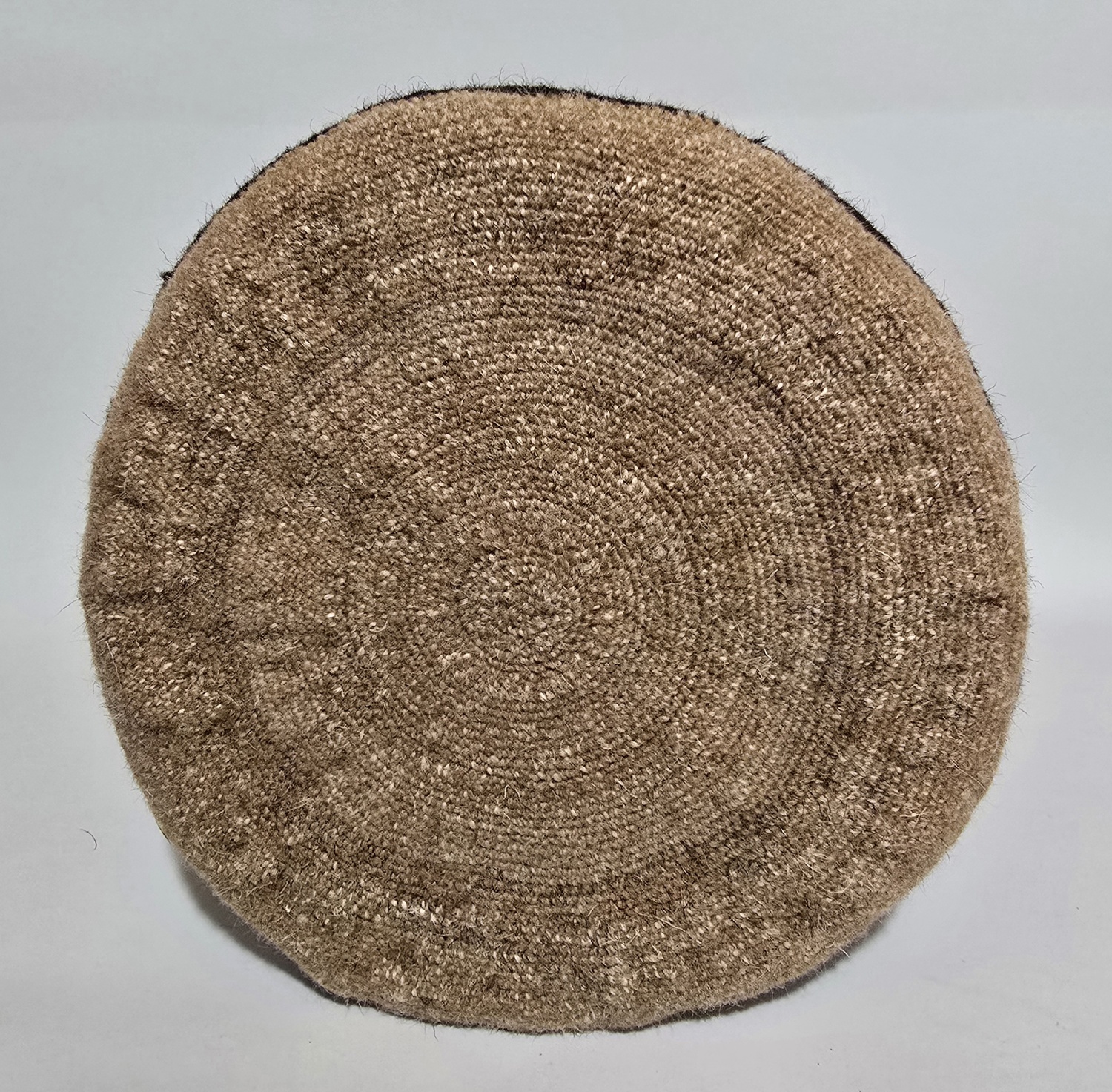 Material y Pureza: Cada hebra de lana, hilada y tejida a mano, conserva su color natural, reflejando la pureza de los materiales y la profunda conexión con la tierra.