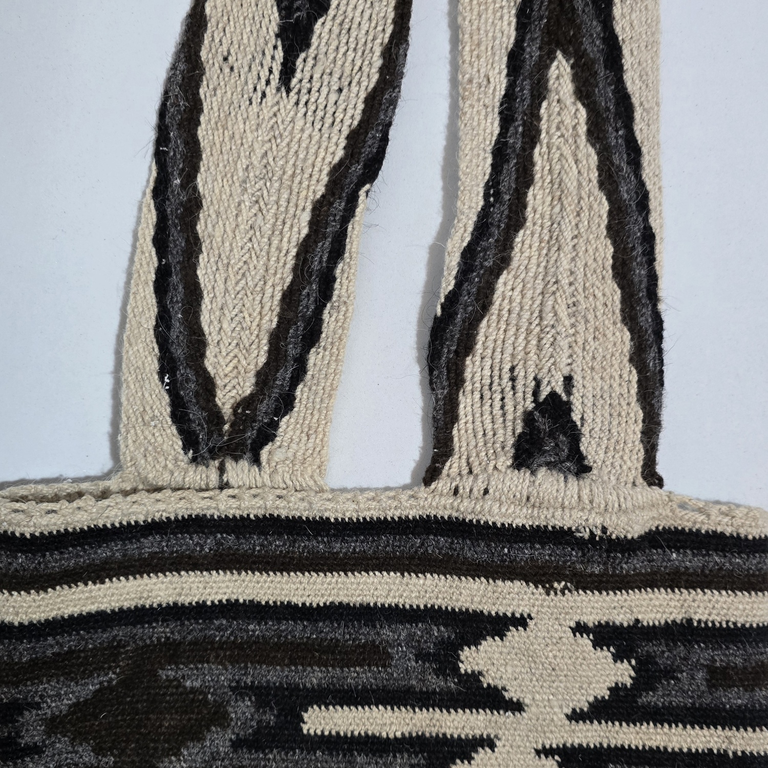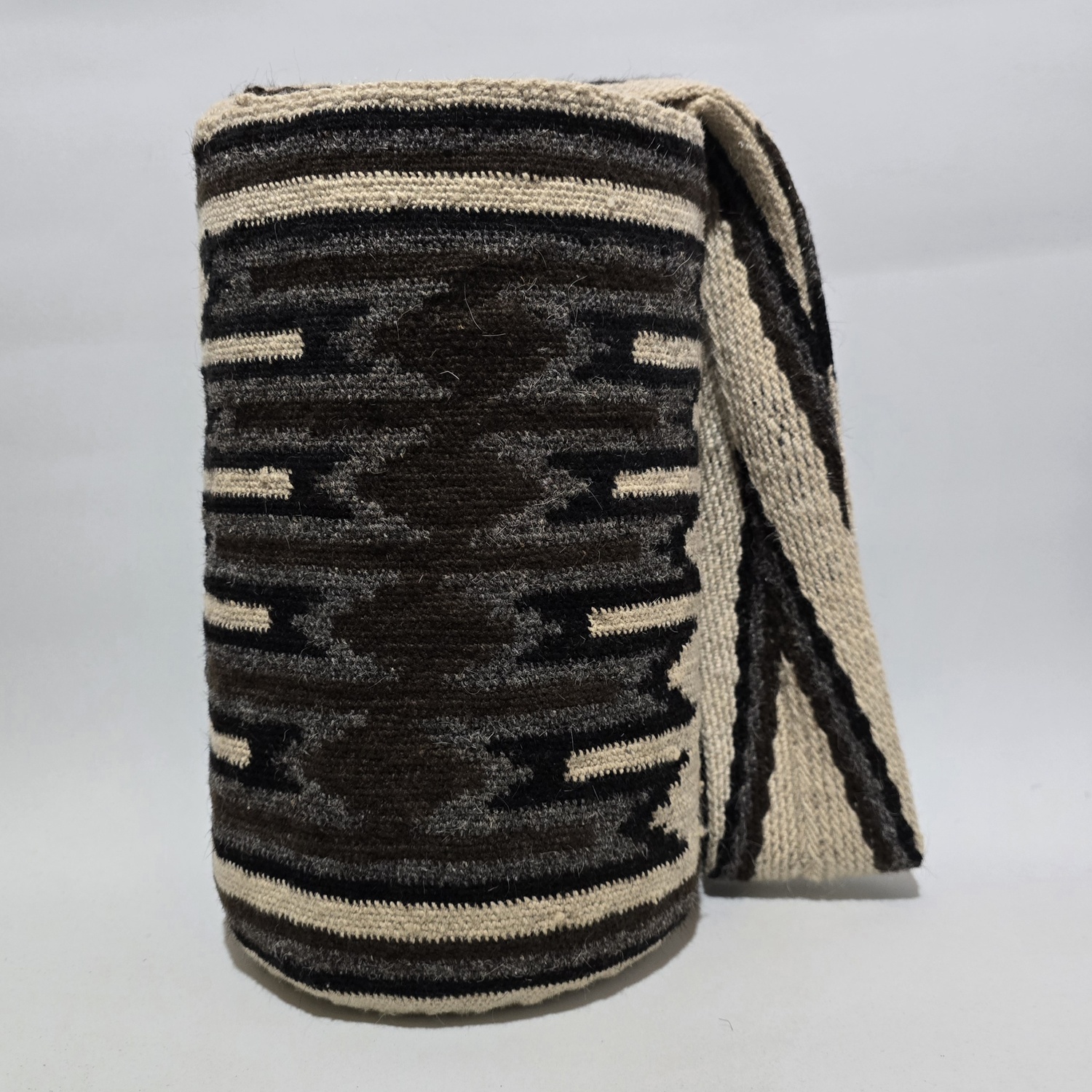Esta mochila arhuaca, tejida a mano en lana de ovejo, es una pieza artesanal que encierra el poder y la vitalidad de la sabiduría ancestral.