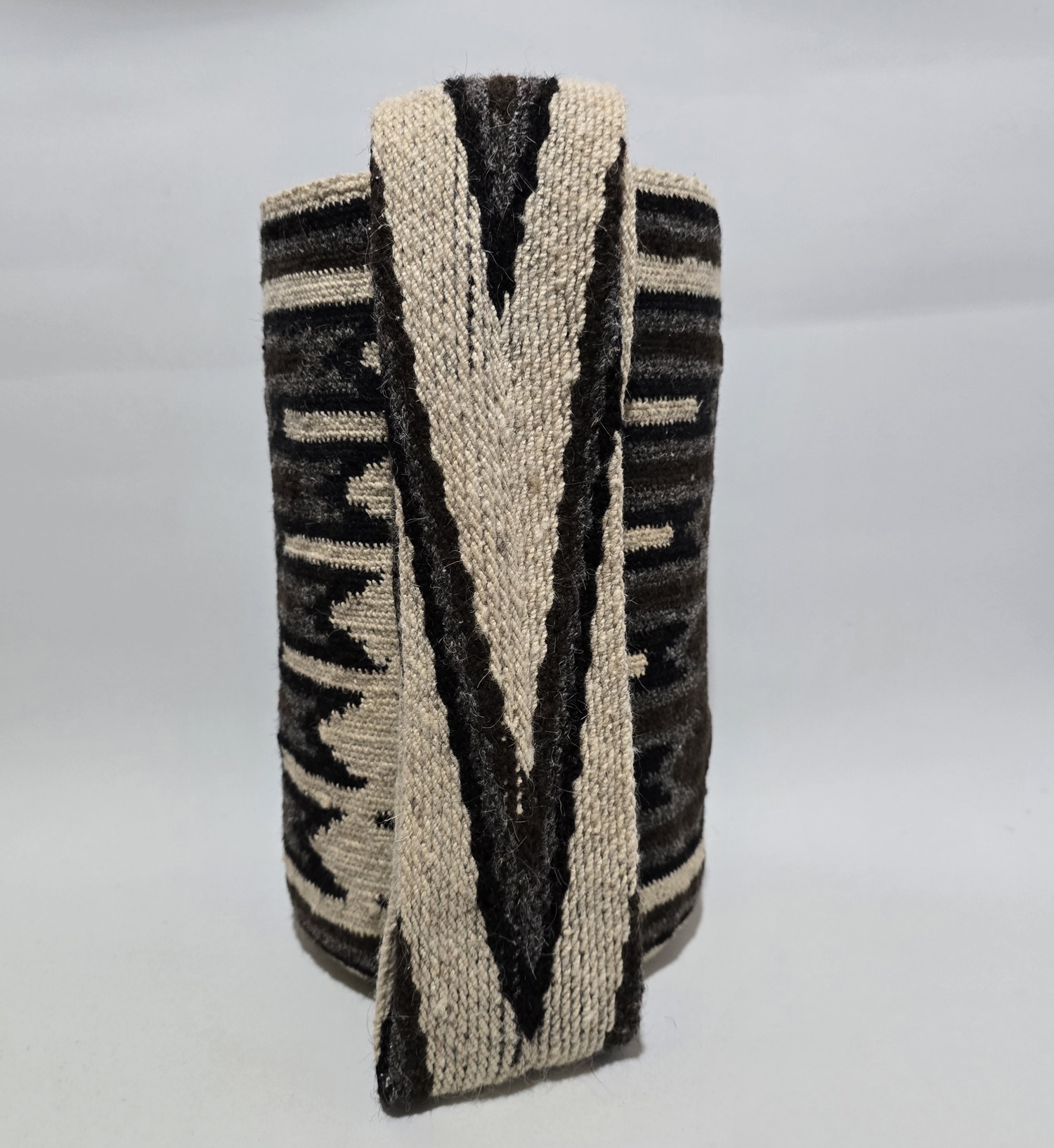 • Material y Pureza: Cada hebra de lana, hilada y tejida a mano, mantiene su color natural, reflejando la pureza de los materiales y la profunda conexión con la naturaleza.