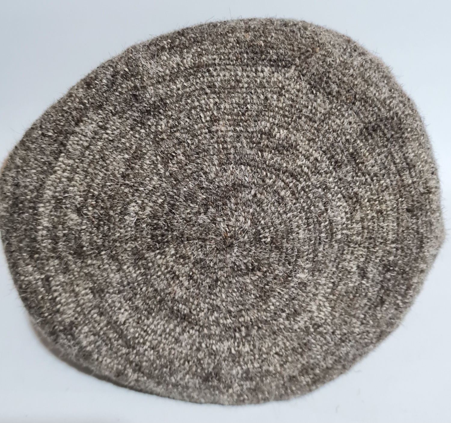Material y Pureza: Cada hebra de lana, hilada y tejida a mano, mantiene su color natural, reflejando la pureza de los materiales y una conexión armónica con la naturaleza.
